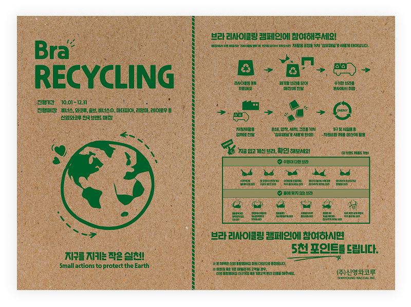 매년 10월부터 12월까지 ‘브라 리사이클링(bra recycling) 캠페인’을 진행하고 있습니다.